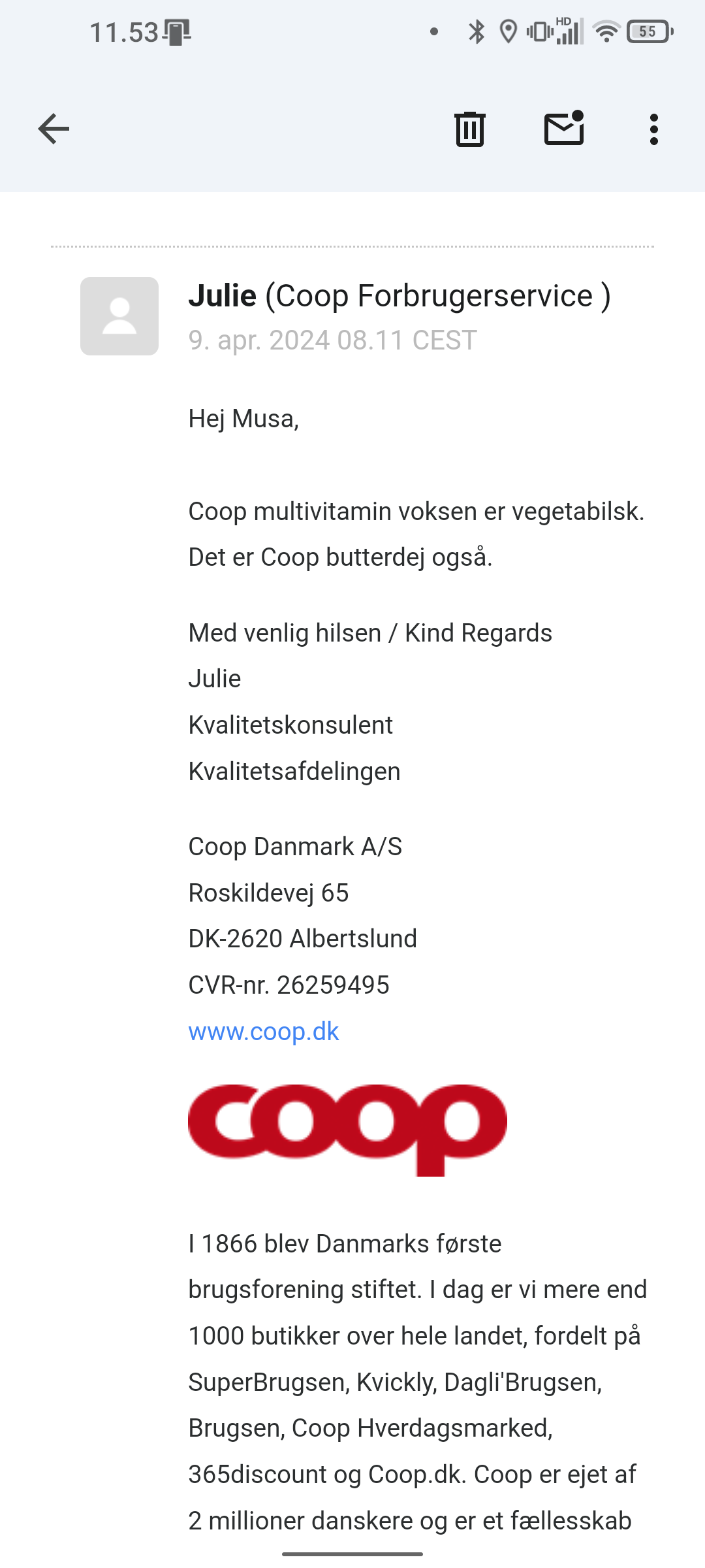 Coop Butterdej er vegetabilsk det er Multivitimin ligeledes, Halal.