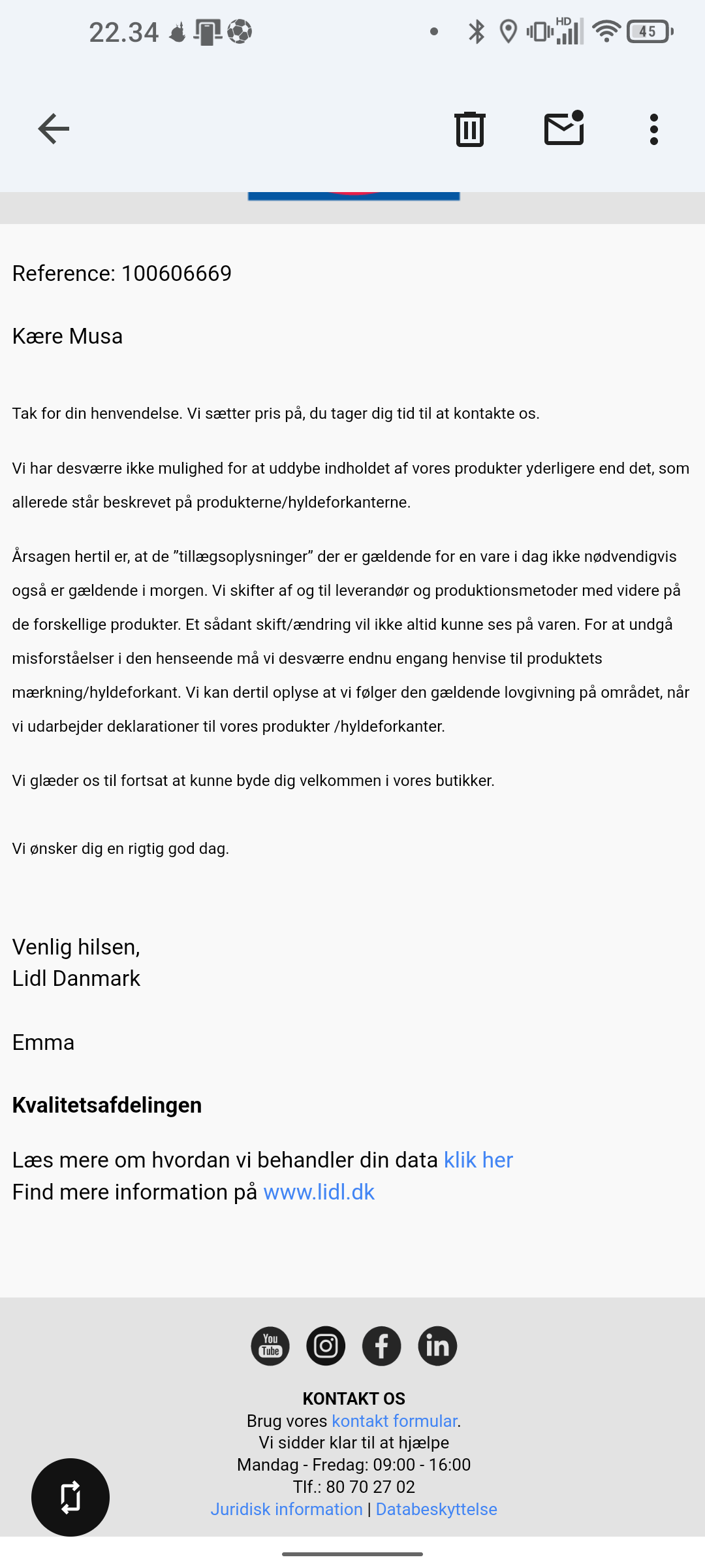 Vita D´or Margarine i fast form er tvilsomt med ingredienserne, produktet indeholder blandede carotener det er farve stoffer, hvis det er e160 E eller F kan der muligvis være geletine i dermed haram hvis det ikke er fra halal slagtet dyr, Lidl kan ikke oplyse mere til blandet carotener hvad det er, dermed kan det ikke anbefales grundet tvilsomheden.